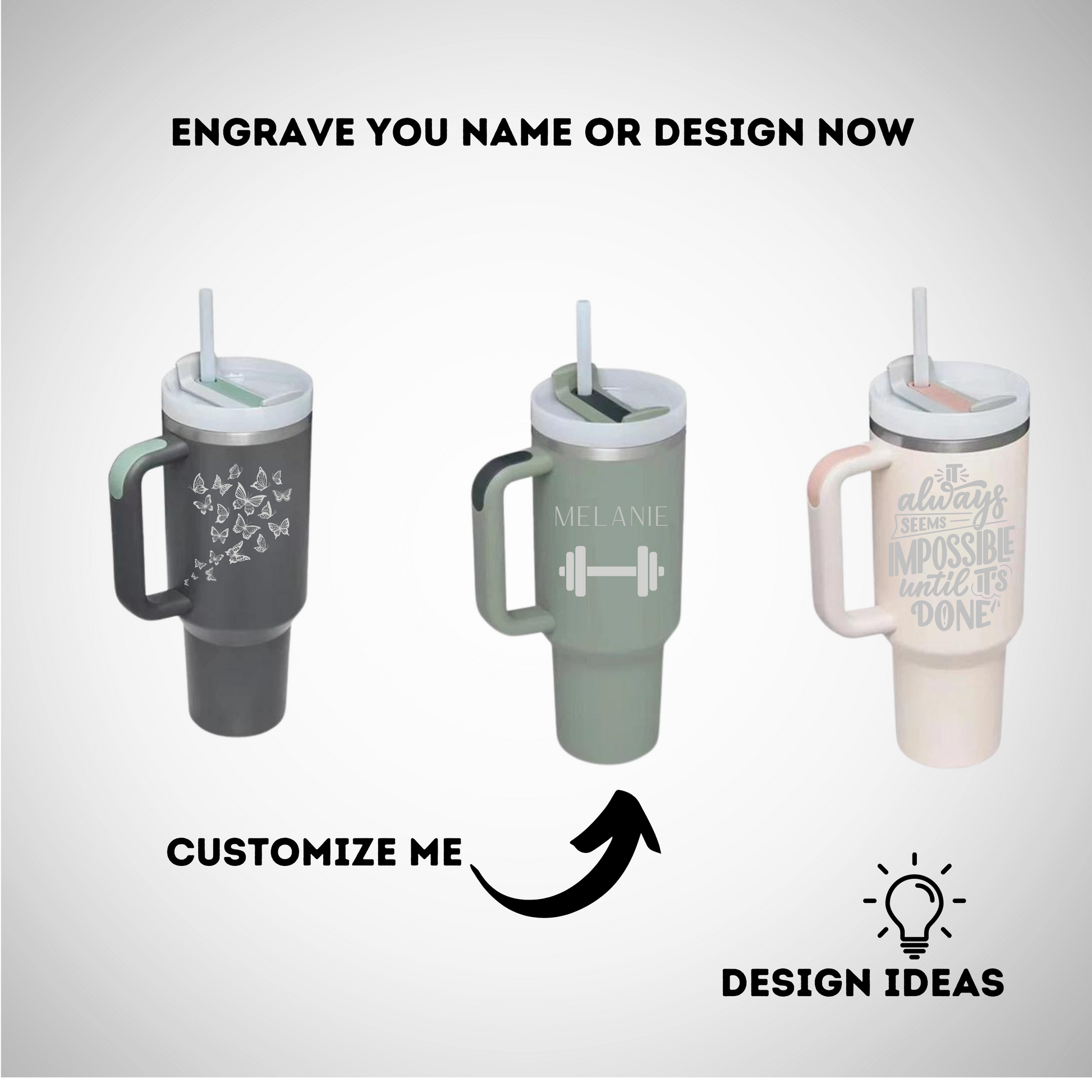 Introducing our 40 oz Tumbler - the perfect personalized touch to your daily routine. Made with durable powder-coated material, you can have your name or details engraved for a unique experience. Say goodbye to lost or mixed-up tumblers and elevate your beverage game with our 40 oz Tumbler.