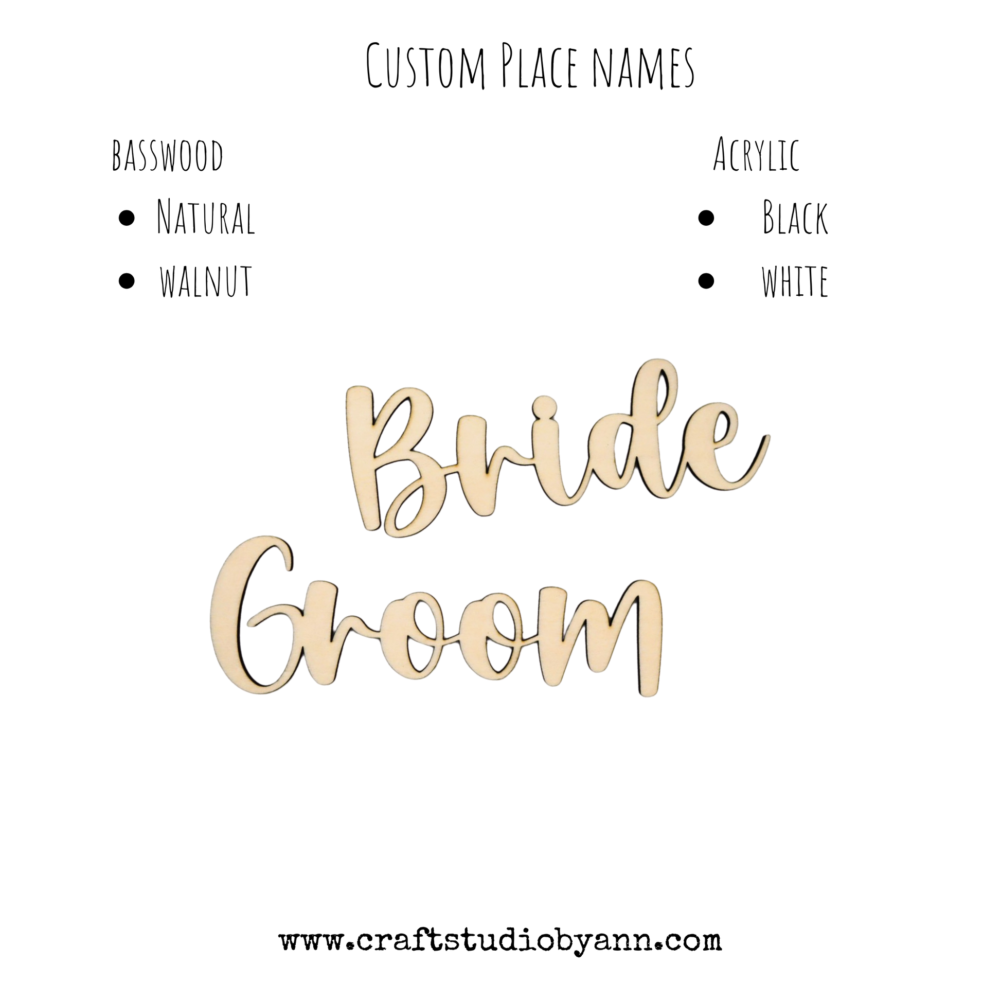 Expertly crafted, our personalized wooden place cards offer a unique touch to your special event. Made from top-quality materials, each card is laser cut to perfection and can be designed with different colors and fonts. Choose from 3mm thick birch plywood or acrylic for a sophisticated and elegant addition to your wedding.